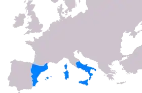في القرن الثالث عشر م ضمّ ملوك أراغون الذين كانوا آنذاك قوامسة على برشلونة، مايوركا وفلنسيا وصيقيلية إلى تاجهم وبقيت فلنسيا التي كان يقطنها السكان المسلمون القدامى المنطقة الوحيدة تحت حكمهم المباشر وكانت تتميّز بوضعية قانونية خاصّة. أمّا مايوركا وصيقيلية فقد كانتا تحت حكم أفراد آخرين من العائلة المالكة البرشلونية وكانت العلاقات بين هؤلاء الحكّام جدّ متأزّمة. في القرن الرابع عشر كانت أبرز القوى الفاعلة من الجانب الأوروبي: جنوة والبندقية ونابولي وتاج أراغون.[3]