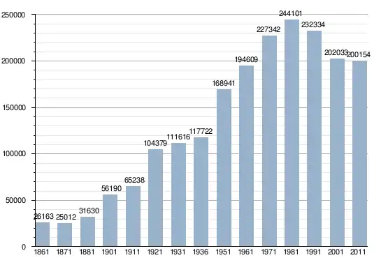 في سنة 1861 بلغ عدد السكان 26٬163 نسمة، وتطور العدد ليصل في سنة 2011 لـ 200٬154 نسمة.