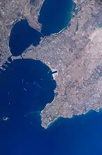 في نهاية القرن التاسع عشر، حفرت قناة للسماح للسفن العسكرية بالدخول لميناء البحر الصغير فأصبحت المدينة القديمة اليونانية جزيرة. وبالإضافة إلى ذلك، فان الجزيرتين والساحل صارتا المحصنتين جيدة. بسبب وجود هذه الخليجين الصغرين، وتسمى تارانتو أيضا "مدينة للبحرين".