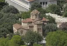 كان القرنان الحادي عشر والثاني عشر هما العصر الذهبي للفن البيزنطي في أثينا. تم بناء جميع الكنائس البيزنطية الوسطى الأكثر أهمية في أثينا وحولها خلال هذين القرنين، وهذا يعكس نمو المدينة بشكل عام. ومع ذلك، لم يدم هذا الازدهار في العصور الوسطى. في عام 1204، غزت الحملة الصليبية الرابعة أثينا ولم تسترد المدينة من اللاتين قبل أن يأخذها الأتراك العثمانيون. لم تصبح الحكومة يونانية مرة أخرى حتى القرن التاسع عشر.