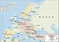 المحور الاساسى:الامبراطورية العثمانية،الاتحاد البولندى-الليتوانى،الامبراطورية السويدية وفقا لبدايات العصرالحديث فقد كانت أوروبا الأكثر نفوذا في العالم حيث كانت تسيطر على الامبراطورية العثمانية في الشرق، والاتحاد البولندى-الليتوانى والامبراطورية السويدية في الشمال، وعلى الإمبراطورية الرومانية المقدسة في وسط أوروبا، اما في الغرب فكانت إسبانيا والبرتغال.اما من ناحية البحر المتوسط فقد سيطرت على كل من جمهورية جنوة والبندقية، والامبراطورية الإسبانية، والامبراطورية العثمانية. شهدت الامبراطورية العثمانية توسعا كبيرة في أوروبا في القرون الخامس والسادس عشر الميلادى ونتيجة لذلك سيطرت على كل من البلقان،ورومانيا،والمجر.وامتدت فتوحاتها حتى حدود فيينا.واصبح الملك شارل الخامس عضو في سلالة هابسبورغ في القرن السادس عشر وبالزواج وطرق الغزو سيطر على اراضى كل من إسبانيا ، والامبراطورية الرومانية المقدسة(ألمانيا،النمسا،شمال إيطاليا،بلجيكا). وفى هذه الفترة نشبت العديد من الحروب بين الدولة العثمانية وهابسبورغ في البر والبحر.وفى عام 1538.واكتسب العثمانيين القوة والمرونة وذلك اثناء معركة بروزة البحرية في 1538 اما في معركة ليبانتوا البحرية في 1571 فقدوا هذه القوة. وفى القرن السادس عشر وصلت السلطة في الامبراطورية العثمانية إلى ذروتها حيث حاصروا فينا-التي تكون عاصمة دولة هابسبورغ المرتبطة بامبراطورية روما المقدسة-في 1683 م وعلى الرغم من ذلك فانهم لم يوفقوا في حصارهم الثانى لفيينا[34] وفى الوقت نفسه توسع الاتحاد البولندى-الليتوانى شرقا وسيطروا على روسيا البيضاء،وجزء كبير من أوكرانيا.وفى بدايات العصر الحديث حكموا كل من روسيا وموسكو،وفى عام 1547 فقد اضعف القيصر ايفان الرابع دولة روسيا.اما امبراطورية السويد فقد توسعت حدودها وذلك بشن الحروب ضد بولندا، والامبراطورية الروسية، والدنمارك،والنرويج.ولكن على الرغم من ذلك فنتيجة لتعزيز روسيا لقوتها في القرن الثامن عشر فقد فقدت امبراطورية السويد حروبها التي شنتها على روسيا في الفترة من 1700 ل 1721