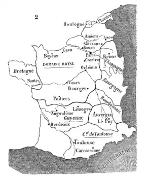 كان يحكم فرنسا في العصور الوسطى أكثر من مملكة. وفي عام 987، أسس الملك أوغو كابيه أو هيو كابيت سلالة كابيت، التي تحكم جزءًا كبيرًا من فرنسا. وحكم فرنسا في هذا الوقت أسرة فالوا، وهي فرع من سلالة كابيت وسلالة بوربون حتى عام 1830[27] امّا النورمان حكموا شمال فرنسا، وانتشر نفوذهم وقوتهم بعد ذلك بالسيطرة على انجلترا وصقلية.