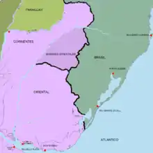 ولدت الصراعات الحدودية بين إسبانيا والبرتغال، وتتبعهم مسعتمراتهم بين 1680 و1828. أسس مانويل دي لوبوالعسكري الربتغالي أول مدينة في ما يُعرف الآن بباراجواي وسماها ساكرامنتو. مما أدي إلى تعزيز قوة الجيش من توكومان وكورينتس وسانتا فيه والبعثات التبشيرية من قبل حاكم ريو دي لا بلاتا الإسباني والذي احتل المدينة المذكورة أعلاه. وفي السنة التي تليها وقٌع الملك الإسباني معاهدة مع البرتغال لإرجاعها في مقابل عدم التجارة في المدن الإسبانية.