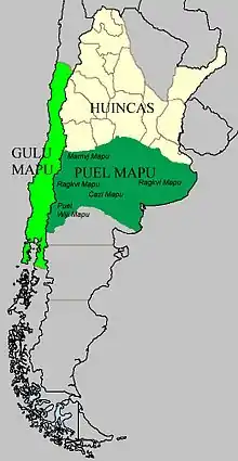 في القرن 18 استطاعت شعوب المابوتشي تكوين كيان إقليمي سُمي بويلمابو أو بويل مابو والتي امتد من سلسة جبال الإنديز ونهر ليماي والكورو ليوفو أو ريو نجروفي الجنوب في منطقة ينوكين حتى نهر كوارتوفي الشمال والمحيط الأطلنطي في الشرق. وتم الاعتراف في برلمان لونكيمو عام 1784.[14]