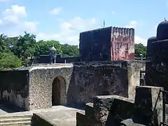 ومن هؤلاء الحُكَّام شاه بن ميشهان، وهو آخر سُلطان فارسيّ حكم مُومباسا، حيث تقلَّد الحُكْم في نهاية القرن السادس عشر الميلادي، وفي سنة 1589 اتَّصلَ به العثمانيون وشجَّعُوه على إعلان الثورة على البرتغاليِّين، ولكن ما إن أعلنَ ثورته حتى استدعى البرتغاليّون أساطيلهم من ميناء غوا الهنديّ وضربوا الحصار على مدينته. وقد سقطت مُومباسا سريعاً ونُهِبَت ودُمِّرَت وقُتل سلطانها، وعُيِّنَ مكانه السّلطان أحمد الذي كان حاكم ماليندي. وتجنُّباً لوُقوع مثل هذا التمرُّد مُستقبلاً، جلبَ البرتغاليون معمارياً إيطالياً أشرفَ على بناء حصنٍ هائل في مُومباسا سُمِّيَ حصن يسوع، وتمركزت فيها حامية قوامُها مائة رجلٍ بدءاً من عام 1593.[17]