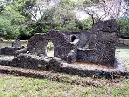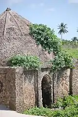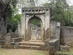 وكانت إحدى السّمات المُهمّة الأخرى المُميِّزة للمدن السواحلية أنَّ فيها كثرةً من المقابر تحظى باهتمامٍ خاصّ. فقد كان من المُعتَاد بناء المقبرة بالقُرب من مسجد المدينة أو البلدة، وكانت تُشيّد القبور والأضرحة في الكثير من الأحيان بأي جزءٍ من المدينة. وقد صُمِّمَت هذه القبور بأساليب معماريَّة مُختلفة، فمنها ما كان مُغطّى بقبّة أو قنطرة (قوس)، ومنها ما أضيفت إليه أقواسٌ وزخارف محفورةٌ في المرجان، وكانت تبنى فوقها - أحياناً - أعمدةٌ مُزيَّنة أيضاً.[64] ومن المُحتَمل أن السَّبب في أن الأضرحة صُمِّمَت بطريقة مُميَّزة أنها تعود لأشخاصٍ كانوا ذوي شأنٍ في المجتمع السواحليّ، ولا زالت بعضُها تُقدَّس اليوم ويتبرَّكُ بها الناس لأنها تعود إلى شخصيَّات دينية أو تاريخية مُهمّة.[65]