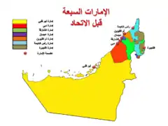 | ملاحظات | انفصل عن أبوظبي عام 1833 | انفصل عن رأس الخيمة عام 1921 | انفصلت عن رأس الخيمة عام 1816 | ||||