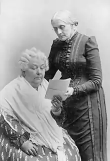 إليزابيث كادي ستانتون and لوكريشا موت التقت إليزابيث كادي ستانتون ولوكريتيا موت في عام 1840 بينما كانت في طريقها إلى لندن حيث تم تجنبها كامرأة من قبل القيادة الذكورية في أول اتفاقية عالمية مناهضة للرق. في عام 1848، عقدت موت وستانتون اتفاقية حقوق المرأة في سينيكا فولز، نيويورك، حيث تم صياغة إعلان استقلال المرأة. وساعدت لوسي ستون في تنظيم أول اتفاقية وطنية لحقوق المرأة في عام 1850، وهو حدث أكبر بكثير أثارت فيه سوجورنر تروث، وأبي كيلي فوستر، وآخرين، سوزان ب. أنتوني، قضية حقوق المرأة. في ديسمبر 1851، ساهمت سوجورنر تروث في الحركة النسوية عندما تحدثت في مؤتمر المرأة في أكرون، أوهايو. وقد ألقت خطابها "لا أذكر امرأة" القوي في محاولة لتعزيز حقوق المرأة من خلال إظهار قدرتها على إنجاز المهام المرتبطة تقليديًا بالرجال.[73] وقد التقت باربرا ليه سميث مع موت في عام 1858، [74] لتقوية الصلة بين الحركات النسائية عبر المحيط الأطلسي.