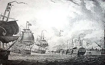وفي 21 مارس 1801 غادر أسطول بريطاني بقيادة السير هايد باركر Hyde Parker، ميناء يارموث Yarmouth مزودًا بتعليمات للتوجه إلى كوبنهاغن ومطالبة الدنمرك بالانسحاب من عصبة الحياد المسلح وفي حالة الرفض يقوم الأسطول الإنجليزي بالاستيلاء على الأسطول الدنمركي أو تدميره• وكان الأدميرال المساعد هو هوراتيو نيلسون Horatio Nelson وكان في الثانية والأربعين من عمره، وكان هو القائد الثاني، وكان مستاء من تبعيته للأدميرال باركر البالغ من العمر اثنين وستين عاما والذي أظهر ميلا للحذر من ميل نيلسون للخروج عن قيادته.