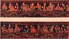مجموعة من الرجال يرتدون الهانفو، من اللوحة مطلية باللك على الخشب، فترة وي الشمالية، القرن الخامس الميلادي