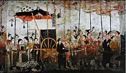 السادة في محادثة، لوحة في مقبرة يرجع تاريخها إلى أسرة هان الشرقية (25-220 ميلادية).