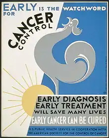 بدأت 'حرب' سياسية على السرطان مع القانون الوطني للسرطان لعام 1971 , وهو القانون الاتحادي للولايات المتحدة.[9] وكان الهدف من القانون "تعديل قانون خدمات الصحة العامة وذلك لتعزيز المعهد الوطني للسرطان من أجل فاعلية أكثر في تنفيذ جهد وطني لمكافحة السرطان". تم التوقيع عليه ليصبح قانوناً من قبل الرئيس الأمريكي ريتشارد نيكسون [الإنجليزية] في 23 ديسمبر 1971.[10]