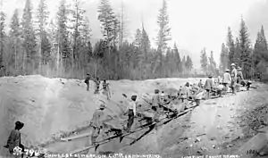 كون العمال الصينيون العاملون في مجال السكك الحديدية الصينية القوة العاملة التي قامت بإنشاء قسمين كل منهما بطول مائة ميل من السكك الحديدية الكندية في المحيط الهادي من المحيط الهادي إلى كريجيلاشي في إيجل باس في كولومبيا البريطانية. وكانت تلك السكك الحديدية بشكل إجمالي تتكون من 28 قسمًا من تلك الأقسام، تم إنشاء 2% منها على يد عمال من أصل أوروبي. وعندما وافقت كولومبيا البريطانية على الانضمام إلى الاتحاد الكونفدرالي في عام 1871، كان من بين الشروط أن تقوم حكومة الدومينيون ببناء سكك حديدية تربط كولومبيا البريطانية مع شرقي كندا خلال 10 أعوام. وقد أثار سياسيي كولومبيا البريطانية وجمهورهم من الناخبين برنامجًا للهجرة من الجزر البريطانية من أجل توفير العمالة اللازمة لإنشاء تلك السكك الحديدية، إلا أن أول رئيس وزراء لكندا، السير جون إيه ماكدونالد، في خيانة لرغبات دائرته الانتخابية في فيكتوريا، من خلال الإصرار على تقليل النفقات في المشروع من خلال تعيين الصينين لبناء تلك السكك الحديدية، ولخص الموقف للبرلمان في عام 1882 كما يلي: "إنها مجرد مسألة بدائل: فإما أن يتم تعيين استخدام هذه القوة العاملة أو لا يتم إنشاء تلك السكك الحديدية."[3] (رغب سياسيو كولومبيا البريطانية في وضع خطة استيطان وهجرة للعمال من الجزر البريطانية، إلا أن السياسيين والمستثمرين الكنديين قالوا أن ذلك قد يكون مكلفًا للغاية).