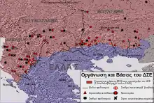 كان الحزب الشيوعي اليوناني يسيطر على أكبر مجموعة مقاومة، هي جبهة التحرير الوطني، كما كان جيش التحرير الشعبي اليوناني (إ إل أ إس)، بقيادة أريس فيلوشيوتيس، وحرب أهلية اندلعت في وقت قريب بينه وبين " الجماعات الشيوعية مثل الرابطة اليونانية الجمهورية الوطنية (إ دي إ إس) في تلك المناطق المحررة من الألمان. كانت الحكومة المنفية في القاهرة على اتصال متقطع مع حركة المقاومة ولم تمارس تقريبا أي تأثير في البلد المحتل. يرجع جزء من هذا إلى عدم شعبية الملك جورج الثاني في اليونان نفسها، ولكن على الرغم من الجهود التي بذلها السياسيون اليونانيون، دعم البريطانيون الاحتفاظ به على رأس حكومة القاهرة.