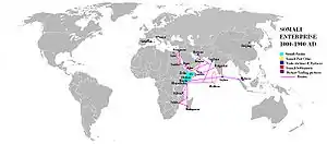 وفي أوائل العصر الحديث، بدأت الدول التي عَقِبَت إمبراطوريات عدل وأجوران في الازدهار في الصومال، وقد واصلت هذه الدول حركة التجارة البحرية التي أسستها الإمبراطوريات الصومالية السابقة، وفي القرن التاسع عشر، شهد صعود الأسرة الغلدية الحاكمة بالتحديد إحياء المشروع البحري الصومالي، وخلال تلك الفترة كان حجم الإنتاج الزراعي الذي تصدره الصومال إلى أسواق شبه الجزيرة العربية ضخمًا للغاية لدرجة أن ساحل الصومال أصبح معروفًا باسم ساحل حبوب اليمن وسلطنة عمان.[23]