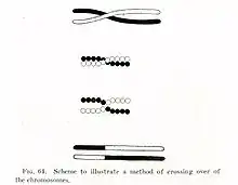 يعد عام 1900م بمثابة إعادة اكتشاف للعالم مندل بواسطة عدة علماء منهم: هيوغو دا فريس وكارل كورين وإريك فان شيرماك والذين توصلوا كلٌّ على حدة إلى قوانين مندل التي لم تكن موجودة من قبل في أبحاثه.[56] بعد ذلك بفترة وجيزة اقترح علماء الخلية أن الكروموسومات هي عبارة عن المادة الوراثية. وخلال الفترة الزمنية بين عامي 1910-1915م قام العالم توماس مورغان في معمله الخاص إلى جانب بعض من العلماء المختصين في دراسة ذبابة الفاكهة باقتراح فكرتين مثيرتين للجدل ومعارضتين لنظرية مندل للوراثة الكروموسومية.[57] حيث قاموا بتقدير ظاهرة الرابطة الجينية وافترضوا أن الجينات الموجودة على الكروموسومات تشبه الخرز المعقود على سلسلة. وباستخدام فرضية عملية العبور بينها تم تفسير الرابطة الجينية وإنشاء خريطة جينية لذبابة الفاكهة، والتي أصبحت كائناً نموذجياً مستخدماً على نطاق واسع.[58]