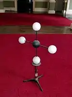 تبع هوفمان في هذا النموذج مقترح طرحه زميله ويليام أودلينغ سنة 1855 م بأن الكربون رباعي التكافؤ. ولا تزال اختيارت هوفمان لتمثيل الذرات مستخدمة إلى اليوم: نيتروجين = أزرق، أكسجين = أحمر، كلور = أخضر، كبريت = أصفر، هيدروجين = أبيض.[22] كانت أوجه قصور نموذج هوفمان الأساسية هندسية: فروابط كربون مثّلها مستوية، بدلاً من تمثيلها رباعية الأسطح، كذلك كانت الذرات غير متناسبة حجميًا، على سبيل المثال كانت ذرة الكربون أصغر من ذرة الهيدروجين. وفي سنة 1864 م، بدأ عالم الكيمياء العضوية الإسكتلندي ألكسندر كروم براون رسم صور للجزيئات مثّل فيها الذرات في صورة دوائر، واستخدم خطوط متكسرة لربط الذرات معًا بطريقة تتوافق مع تكافؤها.