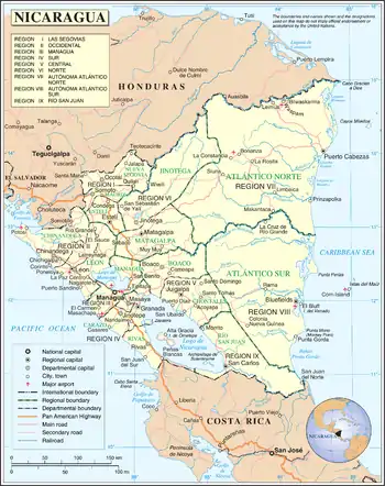 جمهورية نيكاراغوا هي إحدى الدول التي يتكون منها مضيق أمريكا الوسطى وعاصمتها ماناغوا تحدها من الشمال هندوراس، ومن الغرب المحيط الهادئ، ومن الجنوب كوستاريكا ومن الشرق البحر الكاريبي. وهي ثالث أقل دولة من حيث كثافة سكانية في منطقة أمريكا الوسطى.
