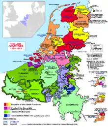 - جاءت تسمية المقاطعات السبعة عشر بعد أن استعاد كارلوس الخامس هابسبورغ دوقية خيلدرز، ونشأت كأرض مستقرة.