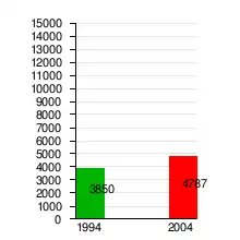 | 1994 | 3850 | 442 | °°°° |