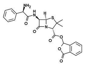 | 3-oxo-1,3-dihydro-2-benzofuran-1-yl (2S,5R,6R)-6-{[(2R)-2-amino-2-phenylacetyl]amino}-3,3-dimethyl-7-oxo-4-thia-1-azabicyclo[3.2.0]heptane-2-carboxylate | |