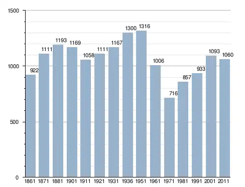 في سنة 1861 بلغ عدد السكان 922 نسمة، وتطور العدد ليصل في سنة 2011 لـ 1٬060 نسمة.