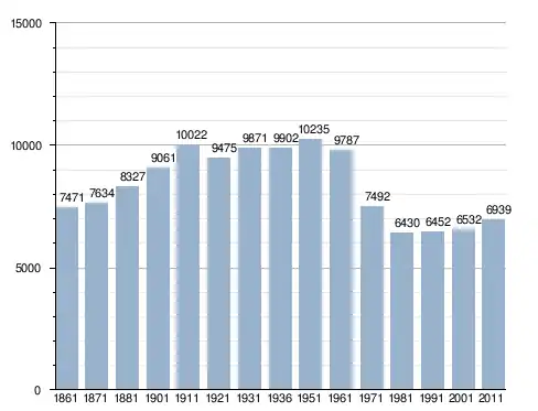 في سنة 1861 بلغ عدد السكان 7٬471 نسمة، وتطور العدد ليصل في سنة 2011 لـ 6٬939 نسمة.