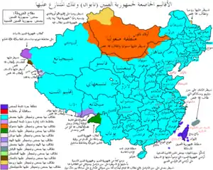 أعلن قيام الجمهورية الصينية بعد نجاح ثورة "وو تشانغ" التي اندلعت شرارتها في العاشر من أكتوبر عام 1911 ضد حكم أسرة تشينغ للبلاد، وأصبح هذا التاريخ منذ ذلك الوقت العيد القومي لجمهورية الصين ويعرف باسم يوم "العشرتين"، كناية باليوم والشهر اللذان اندلعت فيهما الثورة. وفي الأول من يناير عام 1912 أعلن صن يات سين قيام الجمهورية بالصين رسمياً ونصب نفسه رئيساً مؤقتاً للبلاد لحين انتخاب رئيساً يحكم البلاد. وفي العاشر من مارس عام 1912، وكجزء من اتفاقية تنازل الإمبراطور بوئي عن عرش البلاد تم انتخاب يوان شيكاي رسمياً كرئيس للبلاد،[30][34] إلا أنه قام بحل مجلس الكوميتانج وعطل العمل بالدستور بموجب سلطاته كرئيس للبلاد وأعلن نفسه إمبراطورا على الصين في الأول من يناير عام 1916.[35]