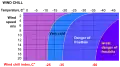 جدول يوضّح تبريد الرياح بالنسبة لكل درجة حرارة للهواء وسرعة للرياح.