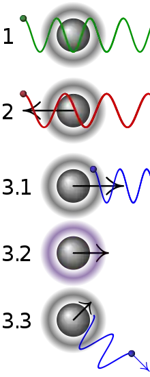 | 3.1 | ذرة تتحرك نحو ليزر يراها الأزرق-تحول و يمتص الفوتون ، وتباطؤ الذرة. |
