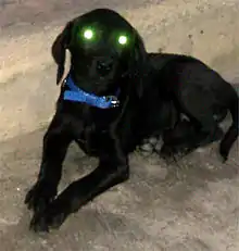 ![]() "بريق العين" ظاهر عند تصوير هذا الكلب. |