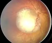 ![]() "تبيض حدقة" طفل بسبب ورم أرومي في شبكية العين اليسرى. "تبيض حدقة" طفل بسبب ورم أرومي في شبكية العين اليسرى. | |