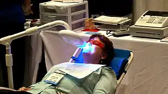 |CitationClass=تم تجاهله (مساعدة); تحقق من التاريخ في:|تاريخ=(مساعدة) - Torres, Carlos Rocha Gomes; Barcellos, Daphne Câmara; Batista, Graziela Ribeiro; Borges, Alessandra Buhler; Cassiano, Karla Viana; Pucci, César Rogério (2011-05). "Assessment of the effectiveness of light-emitting diode and diode laser hybrid light sources to intensify dental bleaching treatment". Acta Odontologica Scandinavica. 69 (3): 176–181. doi:10.3109/00016357.2010.549503. ISSN 1502-3850. PMID 21250920. مؤرشف من الأصل في 25 ديسمبر 2019. الوسيط