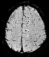 | قابلية التمغنط | SWI | حساس تجاه الدم والكالسيوم من خلال تعويض الانسياب الكامل والصدى الطويل لاستغلال الفرق في قابلية التمغنط بين الأنسجة. | اكتشاف وجود نزيف صغير كما في الإصابات المحورية المنتشرة.[27] | ![]() | |