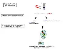 الخطوات العامة لإعداد متسلسل DNA (cDNA) التكميلية للتسلسل موضحة أسفل، ولكن غالبًا ما تختلف بين المنصات. [8] [3] [9]