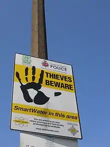 لمنع السرقة، والمساعدة في تحديد مكان الأشياء المسروقة، قد يتم وضع علامة على البضائع بشكل لا يمحى أو لا يمكن الكشف عنه بحيث يمكن تحديد أنها مسروقة، وفي بعض الحالات يتم تحديدها. على سبيل المثال، يتم في بعض الأحيان ترتيب أن الأوراق النقدية المسروقة يتم تمييزها بصبغة لا تمحى لإثبات سرقتها؛ يمكن التعرف عليها من خلال أرقامها التسلسلية الفريدة. تم الإعلان عن أن آلات النقود مزودة برشاشات من المياه الذكية، وهلام غير مرئي يمكن اكتشافه لسنوات، لتمييز اللصوص وملابسهم عند اقتحام أو العبث بالجهاز في مخطط تجريبي لعام 2016 للحد من السرقة بنسبة 90%.[17]