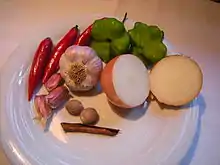 - التوابل الحارة—الفلفل الأسود سواء المطحون أو المفروم فرمًا خشنًا، أو الفلفل الخزامي والفلفل الحلو والكاري والفليفلة الحارة ومزيج توابل الفلفل.