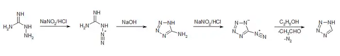 |CitationClass=تم تجاهله (مساعدة) - R.A. Henry, W.G. Finnegan: An Improved Procedure for the Deamination of 5-Aminotetrazole in J. Am. Chem. Soc. 76 (1954) 290–291, doi:10.1021/ja01630a086.