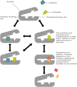توضيح لآلية عمل محتملة لتثبيط غير تنافسي أو تثبيط مختلط.