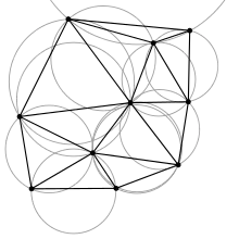 تثليث ديلاوني في المستوي مع الدوائر المحيطة.