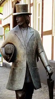 تمثال لتاجر تودن من أعمال أنه داوبنشبك-فوكه (1988) في مدينة متنغن في وستفاليا الألمانية