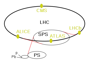 والخمس تجارب الأخرى التي شيدت على مصادم الهدرونات الكبير هي تجربة أطلس وتجربة لولب مركب للميون وتوتيم ، LHCb و LHCf. وقد جهزت تجربة أليس لدراسة اصطدام الأيونات الثقيلة. وسوف تدرس تصادم أنوية ذرات الرصاص الثقيلة تحت ظروف طاقة مركز الثقل تبلغ 76و2 تيرا إلكترون فولت لكل نواة.