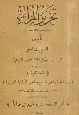 |CitationClass=تم تجاهله (مساعدة) - قاسم أمين (1899). تحرير المرأة. www.hindawi.org. مصر: مؤسسة هنداوي للتعليم والثقافة. صفحة 17.