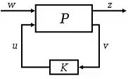 فإن المتحكم K الذي يجعل المعيار اللانهائي من المداخل w إلى المخارج z (أنظر الصورة رقم 1) أقل من للنظام الموصل رجعيا أي هو: