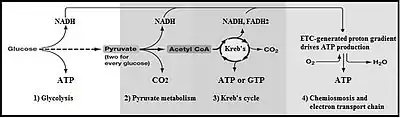 إن تحلل الجلوكوز الكامل يمكن تقسيمه إلى مرحليتن منفصلتين:[8]