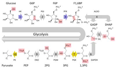 - Bailey, Regina. "10 Steps of Glycolysis". مؤرشف من الأصل في 19 نوفمبر 2016. الوسيط