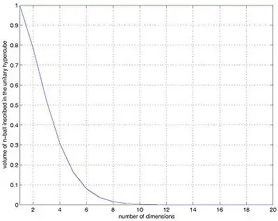في أبعاد K، يقسم حجم الكرة الأكبر المتضمن (والمماس لـ) المكعب الأكبر الموحد ذلك الخاص بالمكعب الأكبر نفسه، ذاهباً بسرعة إلى الصفر (مثل هو أقل من 1 ٪ بالفعل من أجل K = 10، انظر الشكل). نلاحظ أيضا أن t كل نقاط الـ OAT تكون على الأكثر على مسافة واحد من التصميم الأصلي. نظرا إلى أن قطر المكعب الزائدي هو \sqrt{k} في أبعاد k، إذا كانت النقاط موزعة عشوائياً فسوف يكون هناك نقاط (في الزوايا) والتي تكون بعيدة عن الأصلية \frac{\sqrt{k}}{2 هناك 2^k=1024 زاوية في عشرة أبعاد.