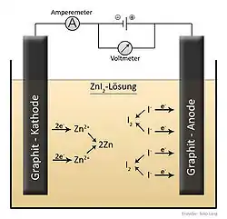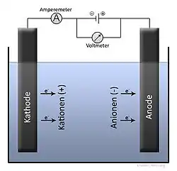 يمرر تيار مستمر بين قطبين في محلول موصل للكهرباء (كهرل). وعن طريق التحليل الكيميائي يحدث انفصال النواتج من المحلول.