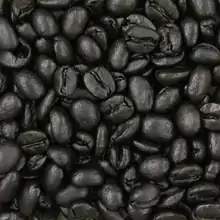 بني غامق، ويظهر هنا لمعان الزيت، وتبدو مزايا التحميص ملحوظة. تكون العملية هنا في بداية الحوض الثاني. وهذا المستوى من التحميص مستخدم في خلطات قهوة اسبرسو. |
