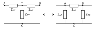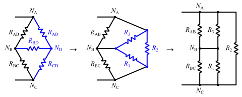 تستخدم الطريقة لإيجاد دائرة مكافئة بسيطة بثلاثة أطراف للدوائر المعقدة. في دوائر الدلتا يشترك كل عنصرين في عقدة بينما في حالة الستار يشترك الثلاث عناصر في عقدة واحدة.